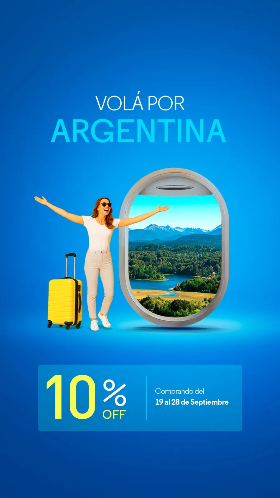 Aerolíneas Argentinas anuncia una promoción especial: desde hoy viernes y hasta el domingo 28 de septiembre, los pasajeros podrán acceder a un 10% de descuento en todos los vuelos dentro del país.