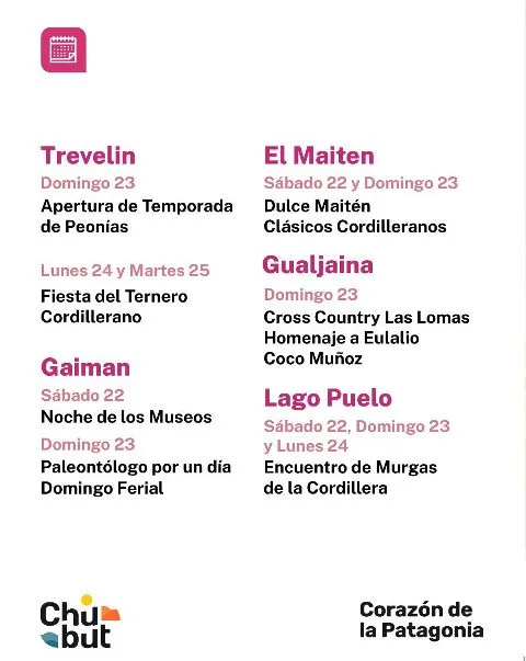 Las localidades chubutenses presentan sus propuestas para este fin de semana largo.