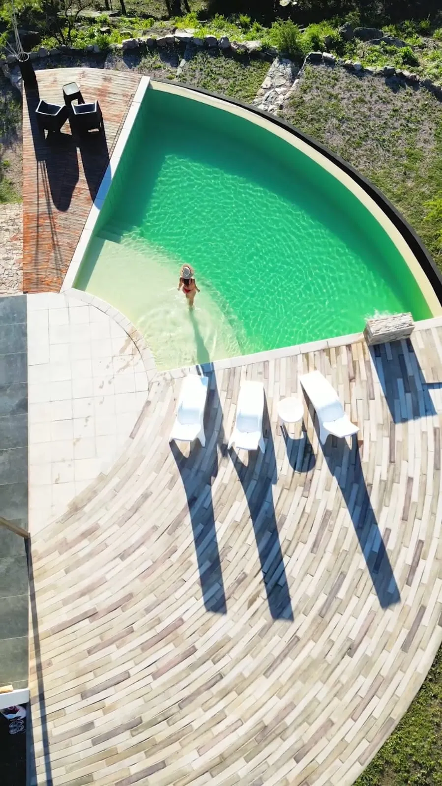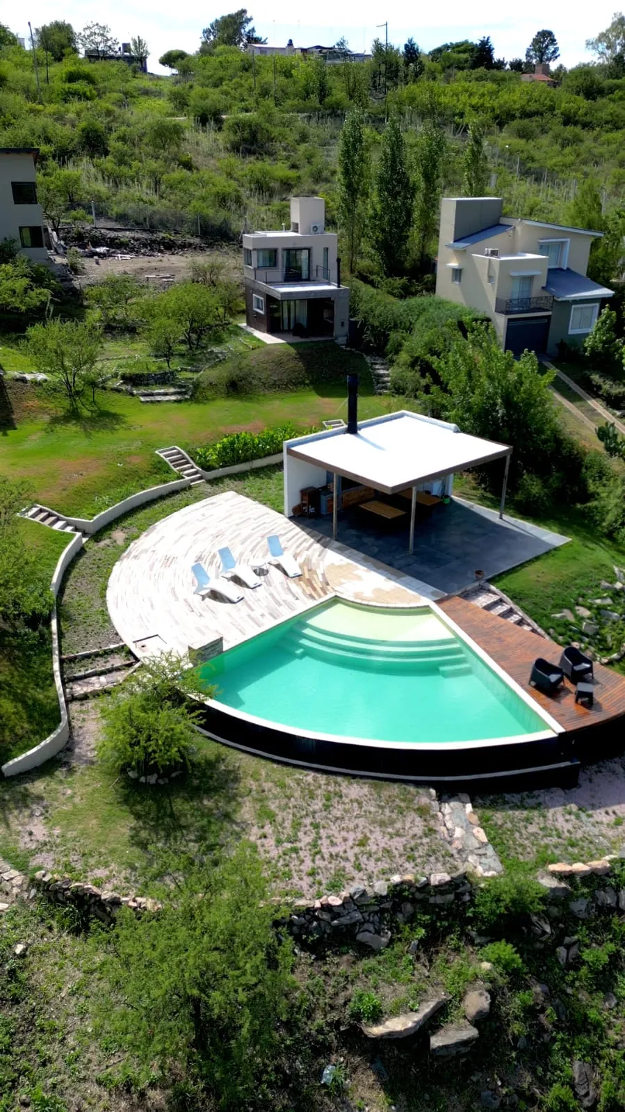La piscina infinita es la gran atracción del complejo, y está al lado del quincho y la parrilla donde se puede prender el fuego y tomar algo mientras se disfruta de una vista única de las sierras. Y mientras algunos preparan el asado o comida, otros pueden estar jugando al pool, al ping pong o a los muchos juegos de mesa que facilita Matías Brenzoni, cordobés de pura cepa y dueño del complejo.