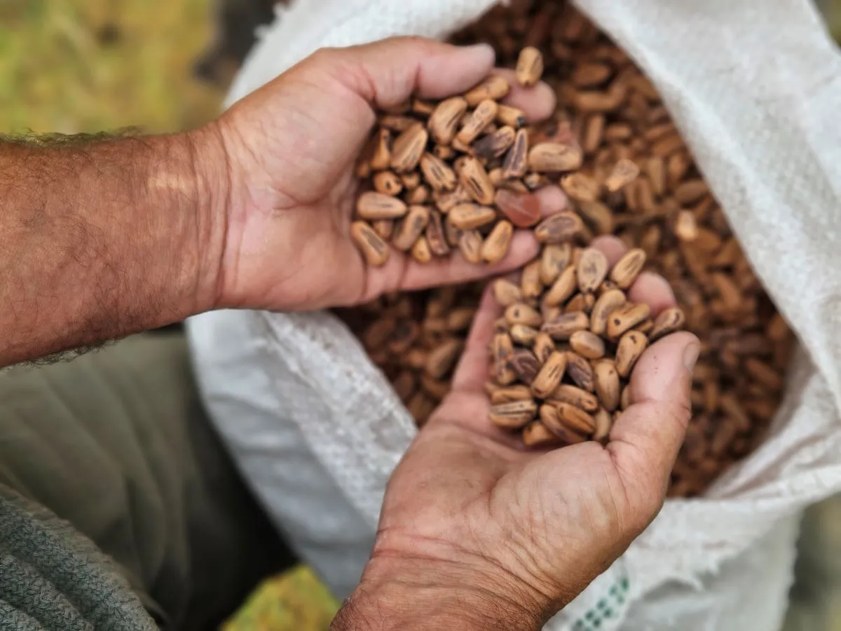“De 100 kilos de piña salen apenas dos o tres kilos de piñón pelado listo para consumir. Por eso es un producto costoso y tan valorado”, explica el emprendedor. En Europa, el kilo de piñón puede alcanzar entre 70 y 100 euros, ubicándolo entre los frutos secos más caros del mercado.