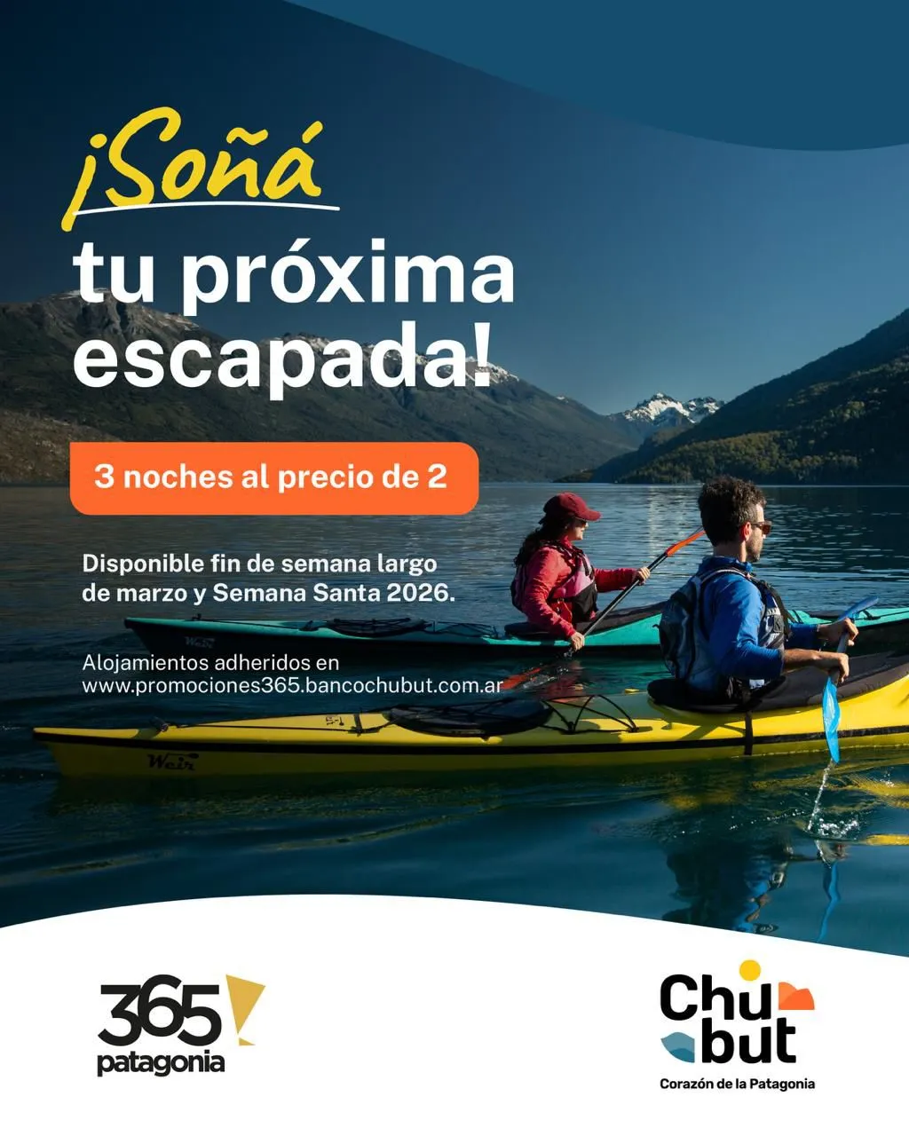 A su vez, los alojamientos podrán ofrecer financiación a través del Banco del Chubut, con una promoción que permite abonar las estadías en 12 cuotas sin interés con la tarjeta Patagonia 365 y podrán acceder a un 30% de descuento, con un tope de 40.000 pesos de reintegro.