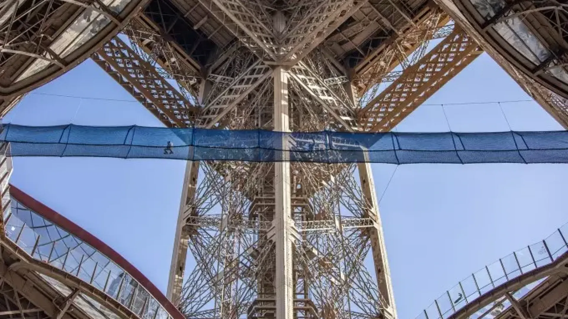 Suspendido entre los pilares este y oeste del monumento, el puente Vértige de la Tour ofrece un cruce aéreo de unos cuarenta metros hasta casi 60 metros sobre el suelo. Esta pasarela peatonal de red, diseñada por la empresa especializada Arboricorde, es el puente colgante más alto de Francia en un entorno urbano. Sujeta firmemente por un conjunto de cables y protegida por varias capas de redes que suman más de 25.000 mallas, la estructura te permite literalmente caminar sobre el vacío mientras disfrutas de una vista espectacular de la Dama de Hierro y París.