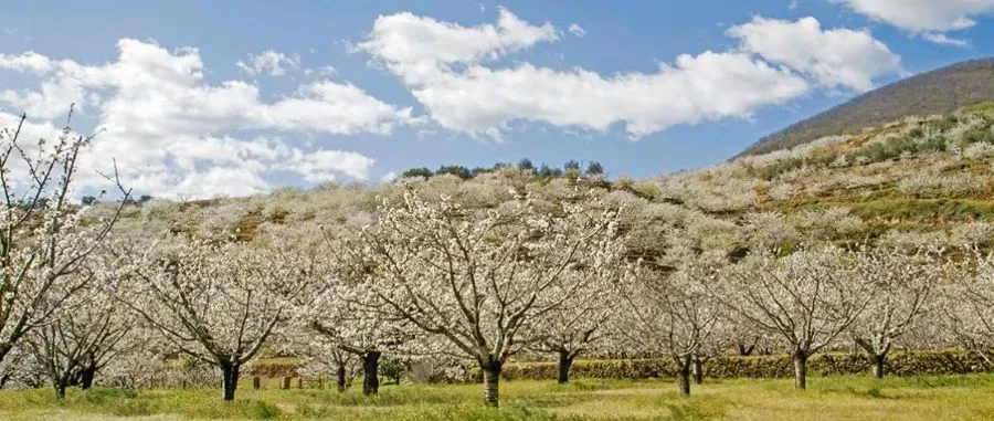 Entre hectáreas de olivos, en Sierra Mágina de Jaén, descubrirás la floración de sus cerezos entre los meses de marzo y abril. El blanco tiñe los valles, flanqueados aún por la nieve en la cumbre. La mayor concentración de cerezos se encuentra en el municipio de Torres.