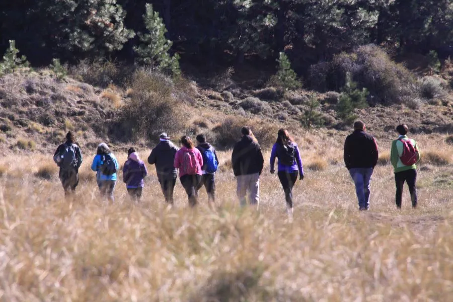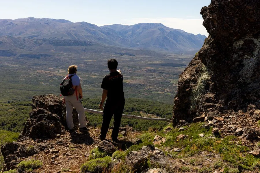Lomas, bosques y vistas del Cordón Rivadavia van integrándose en un paisaje envolvente, que termina en el camino hacia el Centro de Actividades de Montaña (CAM) La Hoya.