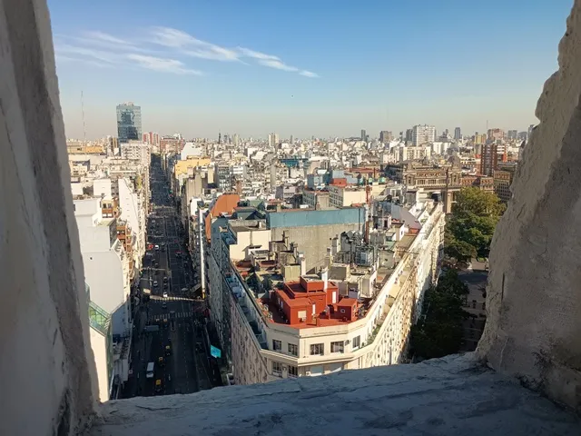 Una vez en la cúspide, las cuatro ventanas del mirador ofrecen una perspectiva completa del cruce de las avenidas 9 de Julio y Corrientes. Desde allí, se puede apreciar el gran trayecto de la avenida más ancha del mundo, el frente del icónico Teatro Colón y la cúpula del Congreso nacional, entre otros grandes atractivos del destino.