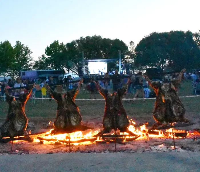 El plato de honor son 50 corderos que se asan a la cruz: una ofrenda imponente de los productores de la región, para un festín gratuito y al aire libre para honrar al pueblo en su aniversario. "Esperamos este año, superar el número de 10.000 personas que asistieron en 2024", agregó Raúl Garmendia, integrante de la comisión de fomento de Saavedra.
