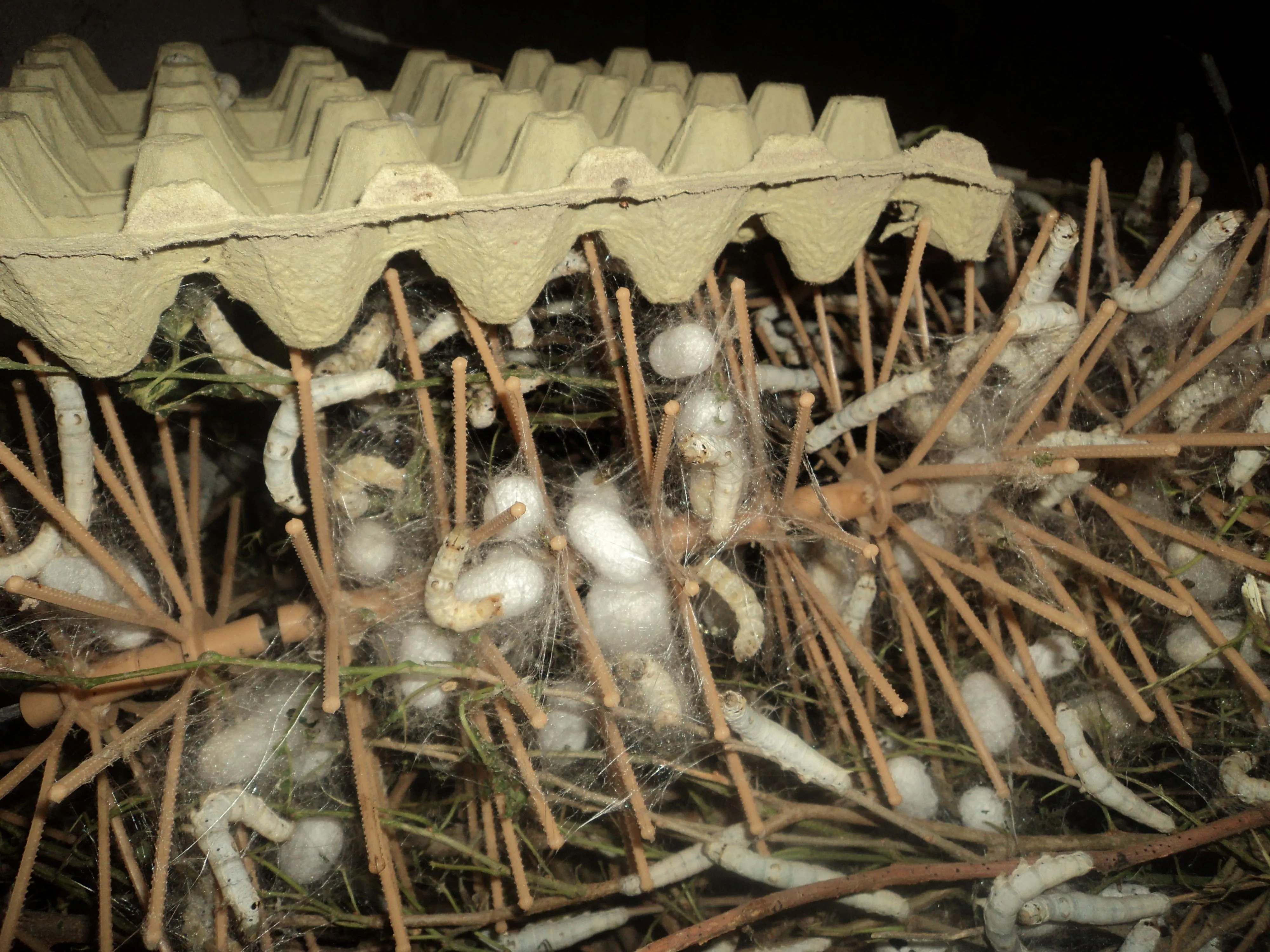 En 2010, su camino dio un vuelco decisivo al descubrir la sericultura. Lo que comenzó como una búsqueda creativa derivó en una formación profunda junto al INTA y el INTI, con quienes colaboró en capacitaciones, proyectos productivos y acompañamiento a productores de diversas provincias. En 2012 se sumergió por completo en este universo al integrarse a la primera unidad productiva de seda de La Pampa en Adolfo Van Praet junto a la familia Cabrera, donde comenzó a criar gusanos y estudiar de primera mano el proceso natural que da origen al capullo.