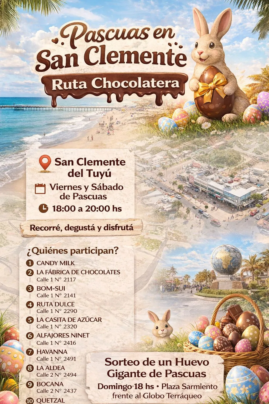 Con el objetivo de generar movimiento turístico y acompañar el trabajo de los establecimientos locales, la Asociación de Hoteleros y Gastronómicos de San Clemente del Tuyú organiza el Paseo Chocolatero de Pascuas, una iniciativa que invita a residentes y visitantes a recorrer la ciudad durante el fin de semana largo.