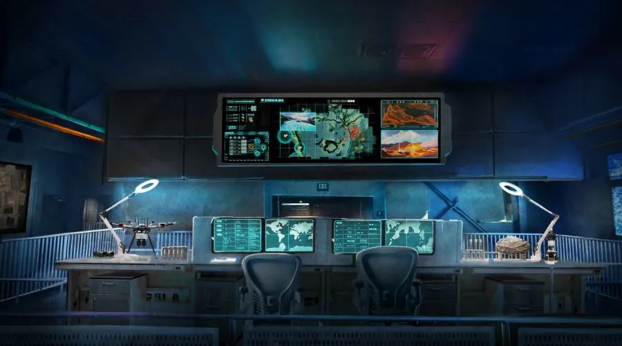 Dentro del corazón de la estación de investigación, los visitantes se preparan para embarcar en una aeronave experimental, un dron de investigación, que los llevará a la misión. Antes de la partida, un científico presenta la última orientación, destacando las poderosas fuerzas de Fuego y Hielo y qué observar durante la expedición.